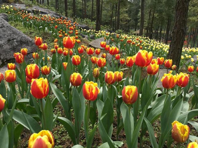 一年之中,从初春到秋季各色鲜花盛开,春季盛开二月蓝、鲁冰花;夏季以向日葵为主;金秋则齐放百花,如秋海棠、倒挂金钟、波斯菊、硫华菊、百日草、熏衣草等。里面有客栈,可以吃饭,两边的风景也比较美,有深沟、瀑布,但是花海还是夏天比春天要好看点!
