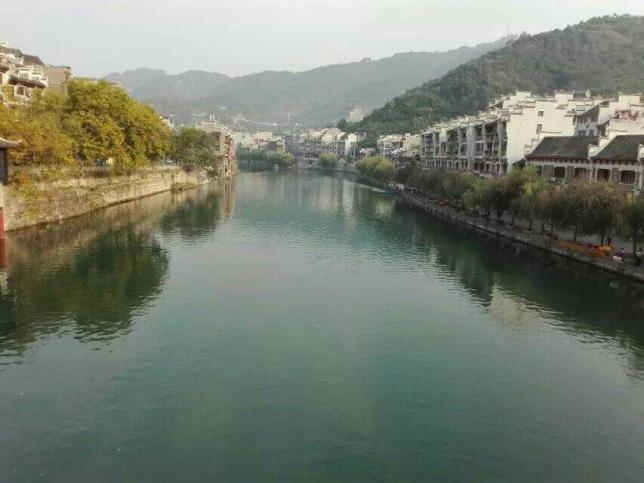 这里的瓦屋多呈现一种黑白灰的色调,没有太多的色彩,但那穿城而过的、碧绿得像玉一般的舞阳河,已是最好的装饰。