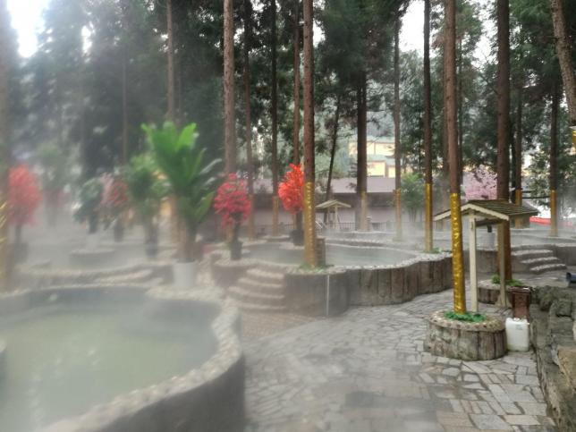 景区集泡池、客房、餐饮、棋牌、会议、SPA、为一体的综合露天温泉休闲度假区。开发面积达20000平方米,这里有形状各异的大、小特色汤池20余个和标准游泳池1个。温泉区有可供健身的标准游泳池。