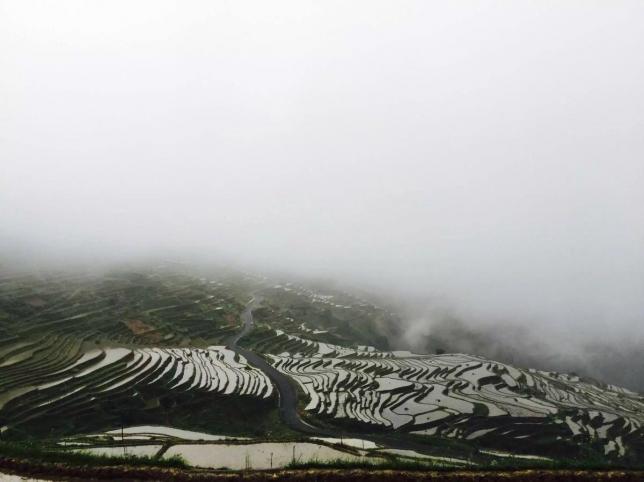 月亮山腹地最性感的曲线或许,你看过目光所及之处都是金黄一片的加榜梯田,但也愿你见过它灌溉时节如仙境般的模样,这里可是中国最好梯田之一。