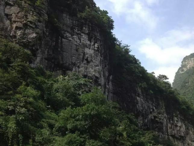 上段由于喀斯特地质作用,地面切割强烈,金刀神工般形成了独特的峡谷沟壑。石壁如削、两山岈合,垂直高度超过百米。