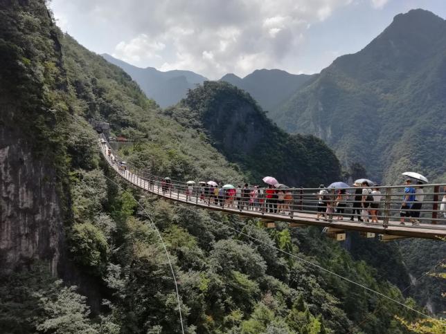 武陵山大裂谷位于重庆市涪陵区城东南约45公里的武陵山乡境内,系国家4A级旅游景区。景区以地球上最古老的“伤痕”— 剧烈地壳运动所致绝壁裂缝称奇,有着“中国第一动感峡谷”美誉。景区1380米天然落差,10公里喀斯特地貌原生态裂谷,景区森林覆盖率达95%以上,夏季气温平均气温低至22摄氏度,负氧离子含量每立方厘米高达10万个以上。