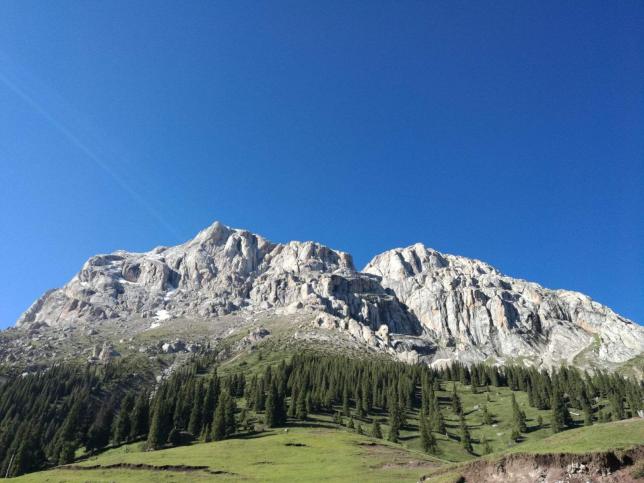 白石峰位于察布查尔锡伯自治县城南,主峰海拔3475米。白石峰是乌孙山山脊上的高峰,该峰峰区地势险要,四临陡壁,北坡为最,峰顶相对开阔。峰区突兀,灰白色灰岩裸露形成白顶。此峰由石炭系灰岩构成,远观呈灰白色,因而得名白石峰。