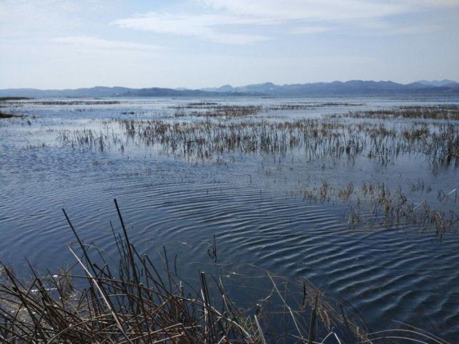 湖平如镜,烟波浩淼,天水一色,云水相接,观鸟天堂,威宁草海,象一颗晶莹的蓝宝石,闪耀在祖国版图西南云贵高原上。草海湖平如镜,烟波浩淼,天水一色,云水相接。湖区有龙王庙、斗姥阁、六洞桥、观海楼、观鹿台等名胜、古迹遗址。草海西边,有一座孤岛名叫阳关山,又称星落岛,矗立在湖光水色之中。海边山下,绿荫掩映着竹篱茅舍,茂林幽深,各具风采。海的东南边,便是大桥烟柳长堤,建于清同治年间,雄屹于古鸭田和南海之间,堤边垂柳拂波。六洞桥上,有古雅玲珑的望海楼,碧瓦朱檐,绿窗回廊;以观草海。长堤之东便是错落有致的川主庙殿宇。如此如诗如画之景,绝对值得一去。
