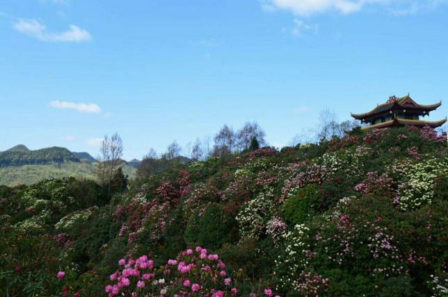 景区内彝族、苗族的插花节、跳花坡,正值争艳时,盛装花树相辉映,人面杜鹃争相艳。百里杜鹃风景名胜区,国家5A级旅游景区、国家生态旅游示范区,位于贵州省毕节市大方、黔西县交界处,因整个天然杜鹃林带宽1~3千米,绵延50余千米(100里),总面积125.8平方公里而得名。百里杜鹃是"世界上最大的天然花园",有"地球彩带、杜鹃王国、养身福地、清凉世界"以及“世界级的国宝精品”的美称。百里杜鹃风景区是国家著名5A级旅游景区之一。
