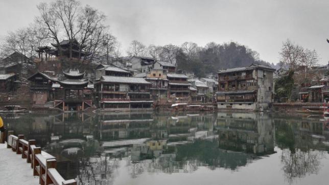 冬天里的凤凰古城,人不多,虽没有春夏的绿树成荫,却又是另一番美景,我更推荐大家来看看冬天你的凤凰古城,运气好的话银装素裹,那真的美上了天际。