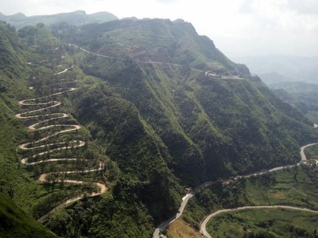 弯道最密集的盘山公路,七十二道拐,是全国有名的“魔鬼路段”,是国道210贵州境内一段。七十二道拐位于遵义桐梓县境内,从新站到楚米之间的凉风垭山上,海拔1450米,长约12公里。险峻自不必说,顾名思义这段公路弯道大且密集,天晴时,大型车辆经过七十二道拐需要一个多小时,号称弯道最密集的盘山公路。当你从山上下来,头晕自不用说,抬头望去,更有让你脚软的高度........