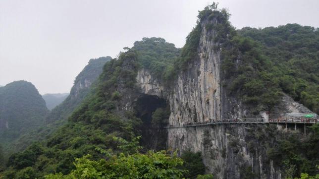 广西融安县大良镇石门村仙湖景区,距离大良镇8公里。石门水库位于大良镇新和村与石门村之间,面积约2平方公里,水质清幽,有壮观的80米高的天然大瀑布,是难得的水上游乐场所。目前融安县已修好通往景区的村级公路,交通十分便利。游客从大良镇镇政府驾车,沿着公路往新和村东北方向的石门水库区域行驶3公里,大约10分钟后即可抵达。