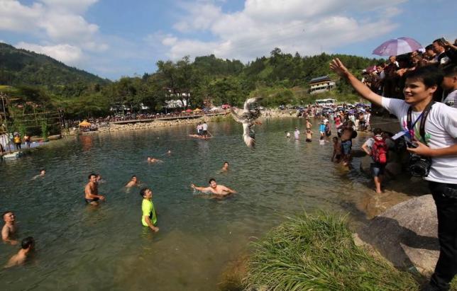 作为鹿寨县新农村建设的一个试点,古赏屯于2008年8月19日举行新农村开村仪式,正式启动"农家乐"旅游,成为该县一个集摘果、钓鱼、烧烤、漂流、观光于一体的生态旅游景点,其中古赏河漂流让您在四面青山环绕、时而湍急时而平缓的水流中蜿蜒而下,零距离感受大自然的神奇和美妙。