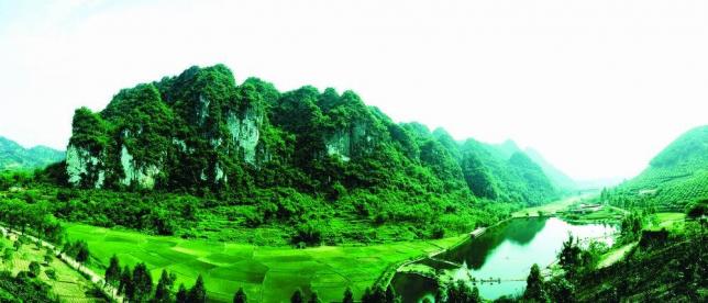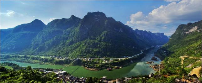 红水河百里画廊是大化电站至江南乡的红水河段,景区的景点密集,船移景换,人称“百里画廊”。