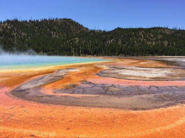 大棱镜温泉又称大虹温泉,是美国最大世界第三大的温泉,它每分钟大约会涌出2000公升温度约为71℃的地下水。最神奇的是湖面的颜色会随着季节而改变,春季湖面的绿色变为灿烂的橙红色,夏季则又呈现出橙色、红色或者黄色,到了冬季水体则呈现出一片深绿色,被誉为“地球上最美丽的表面”。