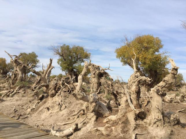 驱车沿着世界流动沙漠中最长的公路前行,车队穿越整个沙漠,耗时将在3-5个小时左右,沿途可看见奇异的沙漠景观和千年胡杨。傍晚时分,抵达昆仑山下的红枣之乡若羌。