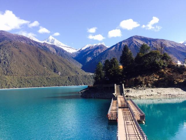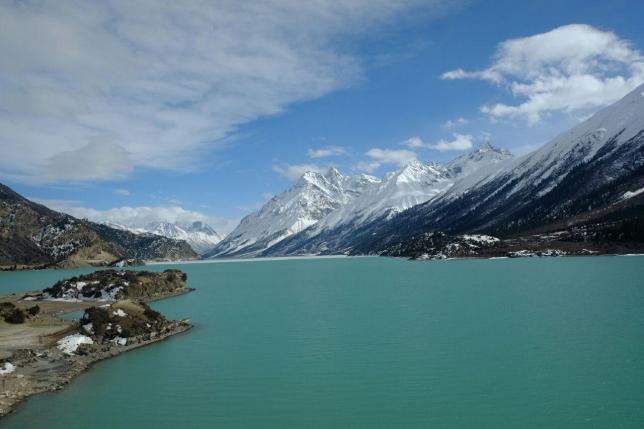 湖面海拔3700多米,湖面面积达6千多亩,来到这里,除了宽广无垠没有其他的形容词,湖面绿波荡漾,雪山隔湖相望,沙鸥、白鹤浮游湖面。