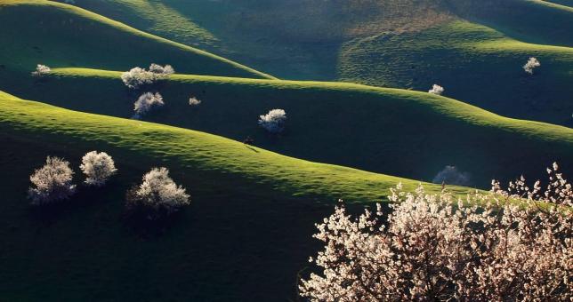 一半是广阔草原,另一半是深色牧谷炊烟,走在新源县那拉提草原,能看到不同的景色,天气很热。草原上有牛羊,在路上收到远方亲人洁白哈达,一起去看巴音布鲁克《东归印象》实景演出,人群中一片片叫好。夜幕降临,我披着新疆朋友给的军大衣,在看台热泪盈眶,这震撼的民族力量。