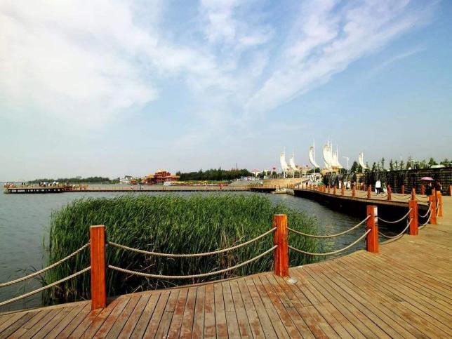 南海湿地景区,位于包头市东河区南侧、黄河边上,昔日这里曾是九曲黄河的一段故道,现在是包头市郊的一片湿地。景区内分为水上活动区和湖滨游览区。这里既具有塞外浑厚、粗犷的特点,又有江南水乡的妩媚灵气,享有“塞外西湖”的美称,成为草原钢城独具特色的旅游风景区之一,是当地市民休闲娱乐的好地方。