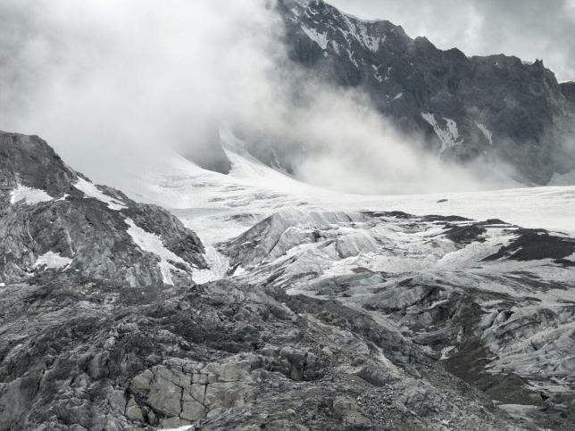 玉龙雪山云雾缭绕,长长的云像一条白色的丝带绕住巍然不动的雪山,天空蓝的像染料染的一样,在阳光的映照下,美得不可方物。