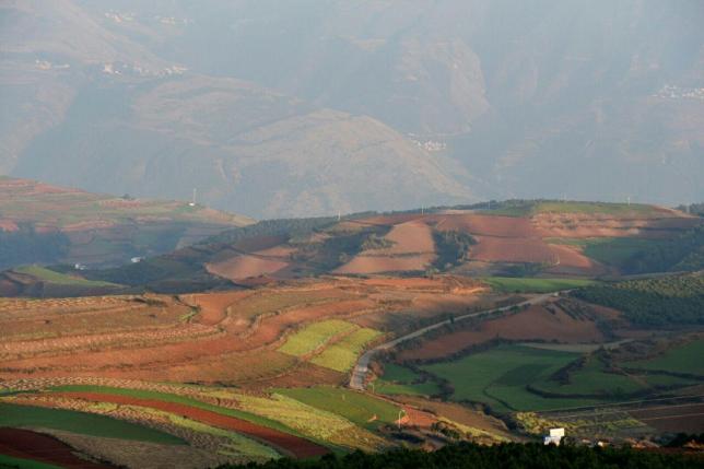 可曾见过一片土地,绚烂如彩虹?除了东川红土地,国内哪还有这般炫美夺目的大地彩绘?云开雾散、艳阳高照,天空越发蓝得动人,云彩变换着不同的姿势,投在田间的光影不时幻化,每一秒钟都是一个全新的画面。