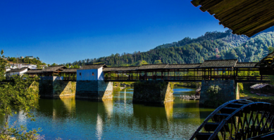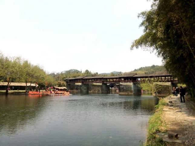 彩虹桥位于清华镇的老街边,距离婺源旅游县城22公里。该桥建于宋代,是古徽州最长的廊桥,至今已有八百年历史。廊桥是一种带顶的桥,这种桥不仅造型优美,而且它可在雨天里供行人歇脚。