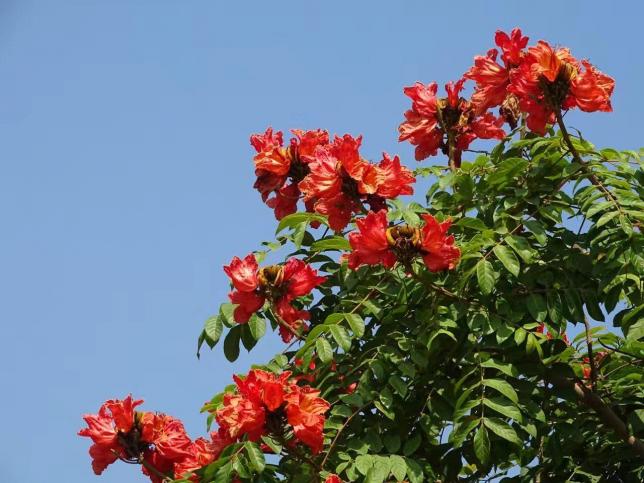 层层叠叠的绿色之间,那如云如霞的宫粉羊蹄甲花灿烂的开满枝头,远看像天边朵朵绯红的云彩。在秋天阳光下的粉色木芙蓉,花姿丰盈令人觉得温暖而生意盎然。美不美,你去看了就知道了~黄钟花、美丽异木棉遍布各个角落,让人一走进去就浑然忘却了城市间的纷乱与嘈杂。
