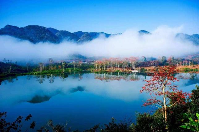 春节期间,昌江开满了漫山遍野的木棉。无论是公路两旁、房前屋后,还是河岸溪边、高山平地,随处可见一簇簇一片片的木棉。