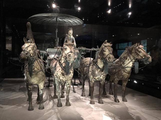 去西安不能错过的当然是秦兵马俑博物馆。博物馆位于西安临潼县秦始皇陵东1.5公里处,是秦始皇陵的从葬坑,被誉为“世界第八大奇迹”,1987年由联合国教科文组织列入“世界人类文化遗产”目录。这个30年前被几个打井农民发现的秦代兵团均按实物比例制作,而且是千人千面,形态各异。从一号坑到三号坑,出土了兵马车、从将军到普通士兵、不同的阵型队列,近8000件陶俑,数十万件真兵器,只可惜发现时多已被楚王项羽损毁陶俑,盗用兵器。无论从政治、军事、历史、艺术或民俗等任何一个角度来看,都能从这里得到诸多启迪。