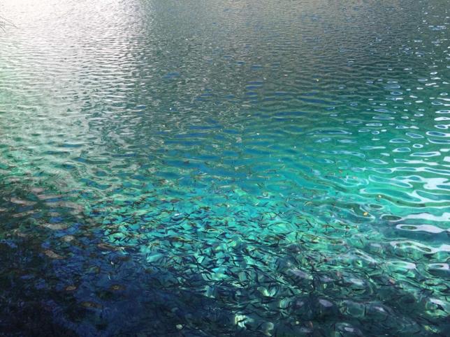 水是九寨沟的灵魂,冬季到九寨沟看雪,更要看水。因为富含矿物质,这里的水是不结冰的,七彩池水依旧七彩。张扬透明的水像是童话里的蓝宝石,虽有雪花飘荡其上,依旧不改风采。七彩的水中有长年不烂的枯枝,还有一种无鳞鱼,静静地凝视水面,方才能看到小小银色的鱼儿穿梭。