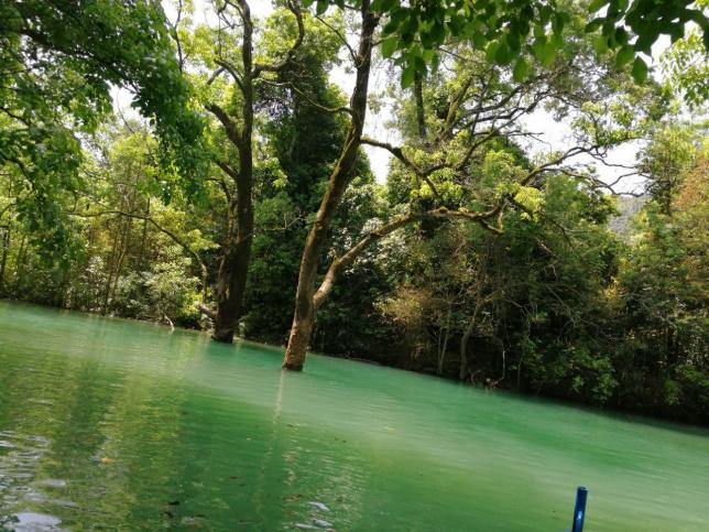 第四天,270km,3.5小时,荔波的大小七孔,人称“贵州九寨沟”,茂林修竹,水质清澈,走进里面,就感觉不到任何炎热了。整个景区融山、水、林、洞、湖泊和瀑布为一体,秀美幽静,加上浓郁的土家和瑶族风情,清幽无限。