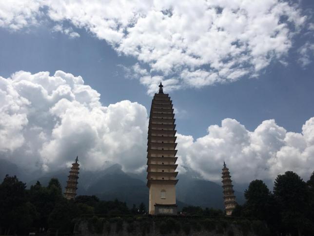 崇圣寺三塔位于大理古城西北部1.5公里处,是大理著名景点,名不虚传,建筑很宏伟,皇家寺庙很气派。景色优美,环境清雅,地理位置绝佳,三塔倒影让人印象深刻。西有苍山十九峰如屏风耸立,东有250平方公里的洱海像镜面展开,山海之间田畴万顷,白族村庄星罗棋布,崇圣寺三塔旅游区,就座落在这如诗如画的名山胜水之间。 三座塔变化中有和谐,对立中有统一,互相依衬,浑然天成,背后是终年积雪的苍山,前面是碧波荡漾的饵海,与“玉洱银苍”浑然一体,展现出一种自然、典雅的东方美。当天下午驾车经昆明外环公路晚上到达曲靖。