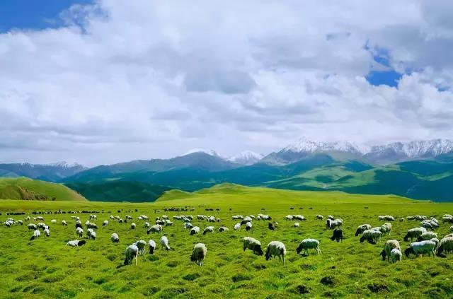 每当夏日来临,巴音布鲁克草原上绿草茵茵,牛羊成群,群山拱抱,河流如带,一片兴旺繁荣的景象。