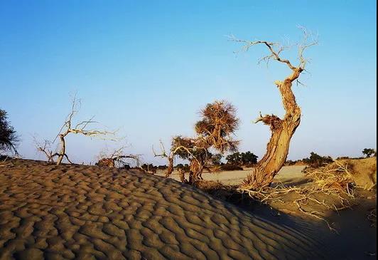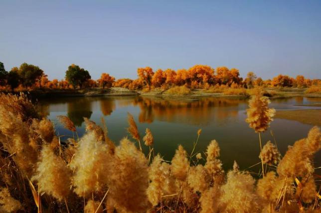 新疆轮台县地处天山南麓、塔里木盆地北缘,这里有世界上面积最大、分布最密、存活最好的“第三纪活化石”——40余万亩的天然胡杨林。
