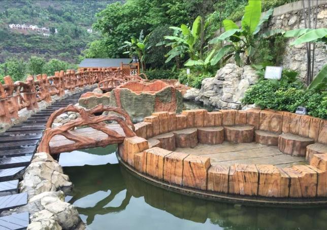 度假村集游泳健身、滑水冲浪、林中温泉功能泡池、廊厅温泉泡池、儿童滑沙、文艺表演等众多娱乐休闲度假内容为一体。是目前西南最大一家以生态温泉为特色的休闲娱乐度假村,为贵阳市民以及全国人民休闲度假多提供了一处选择。