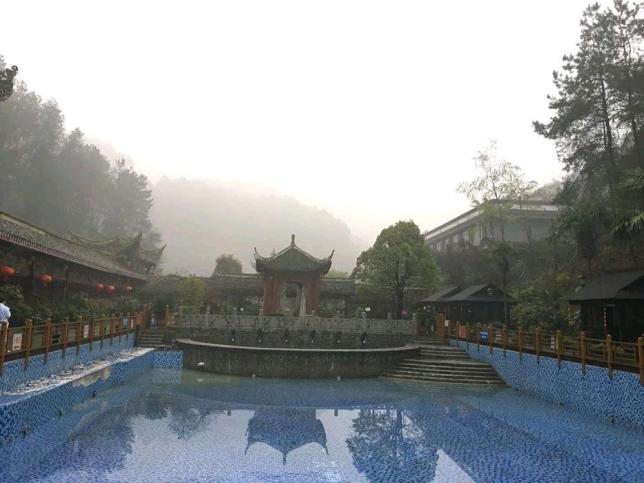 景区温泉水为中性泉,矿化度低、刺激性小,富含钙、镁、钾、钠等,有助于洗浴者缓解压力,促进血液循环。