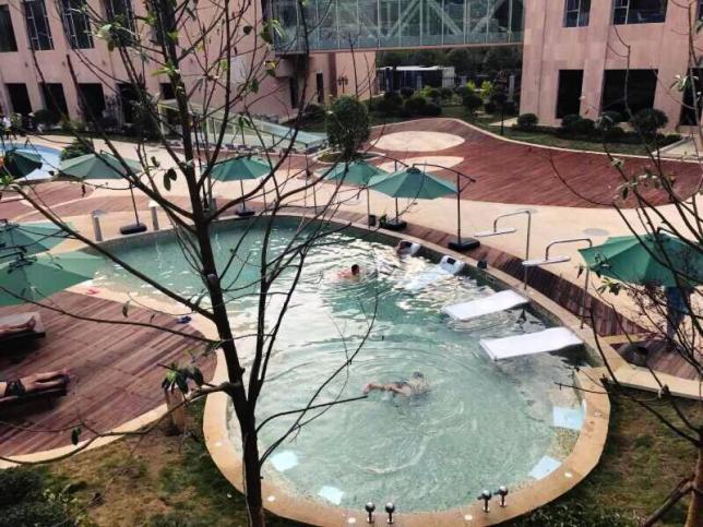 景区集泡池、客房、餐饮、棋牌、会议、SPA、为一体的综合露天温泉休闲度假区。开发面积达20000平方米,这里有形状各异的大、小特色汤池20余个和标准游泳池1个。温泉区有可供健身的标准游泳池。