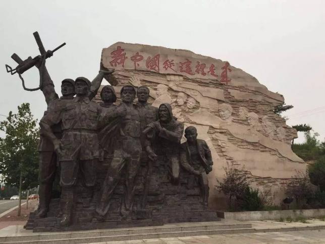 位于西柏坡纪念馆广场中央,均高2.5米,青铜铸像,艺术地再现了西柏坡时期中国共产党第一代领导集体充满胜利的喜悦和对未来无限憧憬的情景。