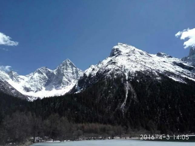 一路上景点很多,我们坚定没有停留,一路直达当天的终点:毕棚沟。一路上路很好走,越靠近天越蓝。云白的想让人有躺上去的冲动。远远的看见了雪山,那个时候我都还没有想到,会在一个多小时如此亲近她。每次看见这样高而远的雪山,我总是会想到梁羽生笔下那个悲情的卓一航,在那个极寒的雪山守候优昙花开的情形。我一直觉得这是个苦情的角色。可是细读却只有无悔:“那些悲欢离合的煎熬,朝朝暮暮的等待,终于在那一刻化成了一个温暖实在的怀抱。他要用自己的后半生抱住那个已经遍体鳞伤的女人。从此,只要有她,就满足了。人生就是百年,人心就是拳大,能吃多少,能用多少,能容多少呢?若能专注于一物,应该要满足了。