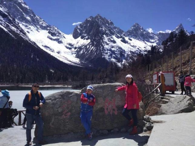 没有排队等待,没有拥堵,转乘观景车,顺利到达沟里,午餐时间,准备吃了再游。盒饭三十元一份,价格有点吓人。可是想想这么高的山,这么冷的地方,心里好像平衡了点。可是还是有点舍不得花那钱,那么选择不吃不抱怨,再苦不能苦了孩子,给孩子们一人买了份。我们吃干粮!