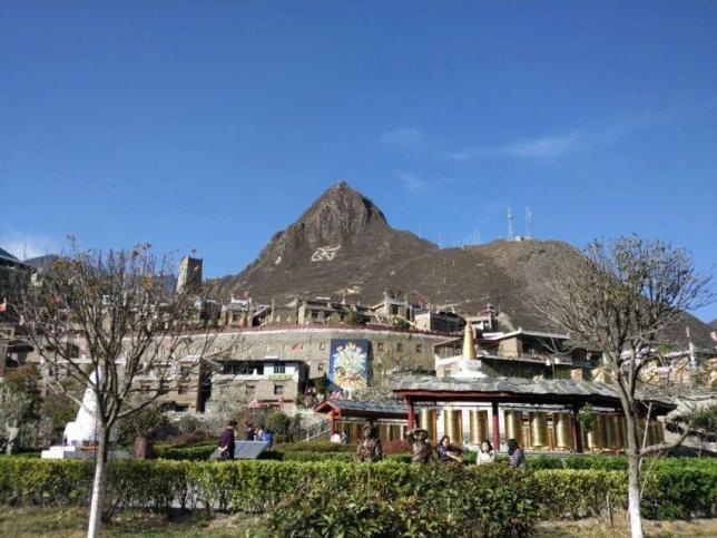 由于想着下山找住点的事。参观就选择了自己感兴趣的,看路标可以看岷江大峡谷,这岂能错过?在寨子的顶点发现好大棵树。叫不出名的花儿在风中摇曳好生漂亮。当然不可错过的拍照了