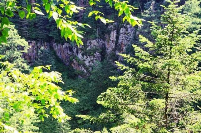 火山口森林位于镜泊湖西北约50公里,座落在张广才岭海拔1000米的深山区,这里是一片长满红松、紫椴、黄菠萝、水曲柳、黄花松、鱼鳞松和落叶松等珍贵树种的原始森林,面积达66900多公顷,是一座天然的绿色宝库,驰名中外,是世界著名的"火山口地下森林"。国家将地下森林和镜泊湖区1200多平方公里的面积共同列为国家级自然保护区。镜泊火山大约一万年前爆发,形成了大小不等、形状不一的10个火山口,经千万年沧桑变化,成为低陷的原始林带,故称火山口原始森林。此种现象颇为少见,由于其环境的特殊性,它不仅成为美妙的风景区,而且成为中外地理学家、历史学生物学家理想的科研基地。