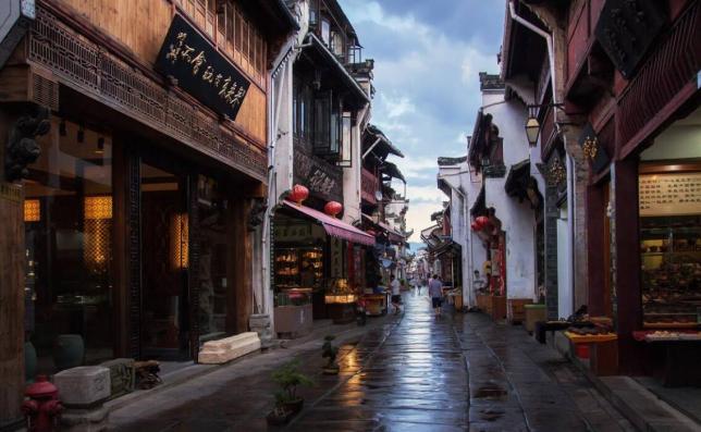 推荐理由: 包括1条直街、3条横街和18条小巷,由不同年代建成的300余幢徽派建筑构成的整个街巷,呈鱼骨架形分布,西部狭窄、东部较宽。因屯溪老街坐落在横江、率水和新安江三江汇流之处,所以又被称为流动的"清明上河图",是中国保存最完整、最具有南宋和明清建筑风格的古代街市,也是中国"全国重点文物保护单位"。2009年,屯溪老街与北京国子监街、苏州平江路一同当选为"中国历史文化名街"。