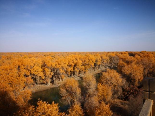 塔里木胡杨林公园附近也有不少历史遗迹,除了感受金色胡杨的坚毅顽强之外,还能体验到塞外沙漠壮阔得令人动容的雄壮之景。世界上的胡杨绝大部分生长在中国,中国90%以上的胡杨又生长在新疆塔里木河流域。