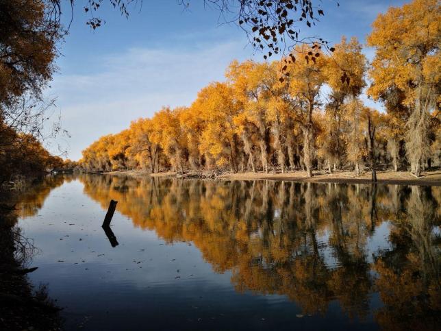 拍摄塔里木河风光,拍摄沙漠野生原始胡杨林,金秋的胡杨林到处一片金黄色,且树形奇特,好似姿态的动物,美丽壮观!塔里木胡杨林风景区集塔河自然景观、胡杨景观、沙漠景观为一体,是世界上最古老、面积最大、保存最完整、最原始的胡杨林保护区。