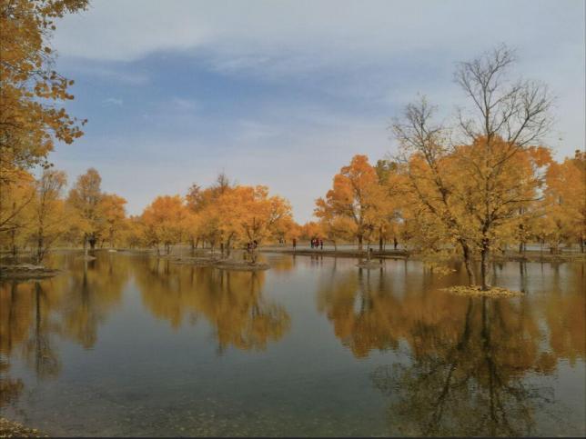 金塔胡杨林,金秋十月的胡杨,绿色的树叶有的已经变黄,在湛蓝的天空下,在荒芜的沙漠中,如阳光一般明媚灿烂。