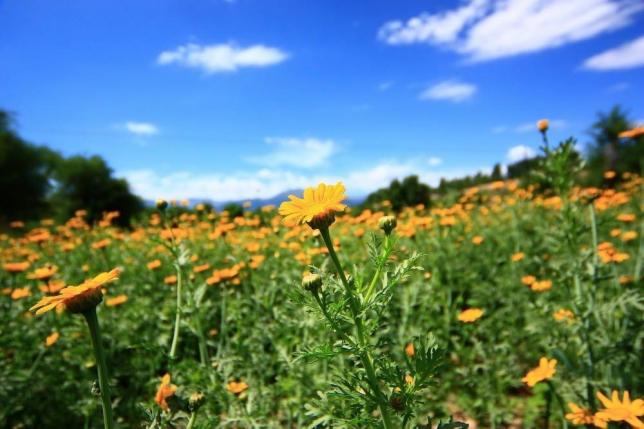 花儿沟在新地乡政府西南6.2公里处,沟中具有近千亩的花草地。自然、朴实、丰富绚丽而不落俗套的植物景观,碧绿的溪水自高处直泻而下,溅起水花朵朵,溪旁花丛高低错落,缤纷绚丽,构成了丰富多彩的立体景观。