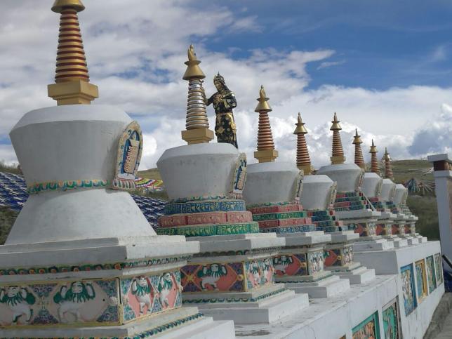 早起出发到达瓦切塔林,瓦切塔林藏语意为大帐篷,这里有纪念第十世班禅大师颂经祈福之地瓦切塔林,塔林周围是一片连绵的经幡,甚为壮观。这里更是红原草原上藏民们最为神圣的祈福圣地。随后我们将游走在红原大草原,夏季的红原大草原是壮美,碧绿的草原上开满了五颜六色的野花,肆意的点缀这副画卷。随后告别红原,继续在草原上前进,翻越黄河长江分水岭,傍晚到达久治县城入住休息。