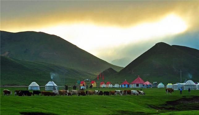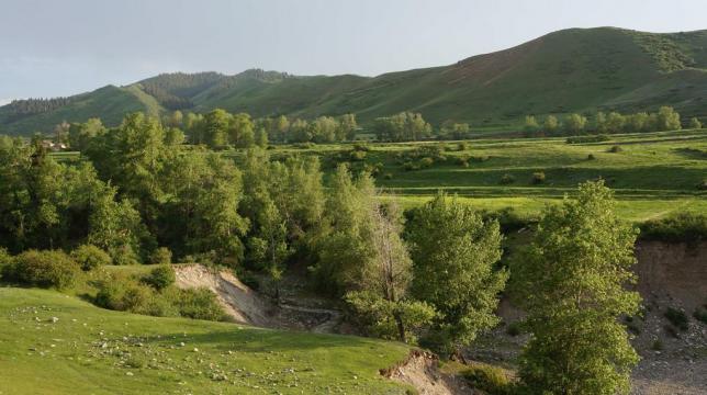 乌拉斯台在蒙古语中的意思是有山有树的地方,在维吾尔语中的意思是高山上的平台。这里是高山平台,也被称为“空中草原”,极目远眺,蓝天下群山峻峭,牛羊成群,密林绿野,溪流淙淙;云杉掩映下,毡房点点,小楼座座,风光如画。