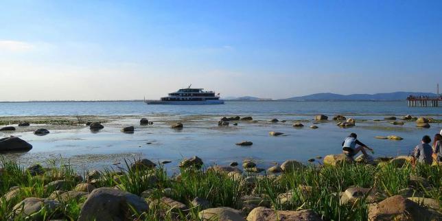 来到太湖,不去品尝一下家喻户晓的船菜,似乎实在说不过去。这里的船菜店紧靠湖岸,船体装修得各有特色。