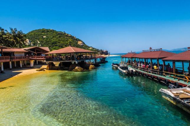 估计很多人和我一样,对石梅湾的认识源于冯小刚的“非诚勿扰2”,影片的取景地艾美酒店就位于这片安静美丽的海滩。和月亮湾相比,同样是水清沙幼,只是贝壳很少,少了些寻宝的乐趣。