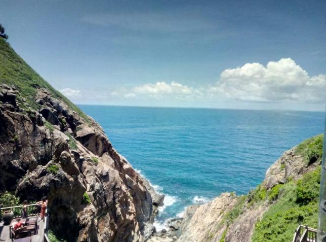 据说从岭上俯瞰月亮湾,蜿蜒曲折的海岸线恰似一弯新月,甚是美丽。但因为修路封闭,我们并没有亲眼见识到这份俯瞰的美丽。