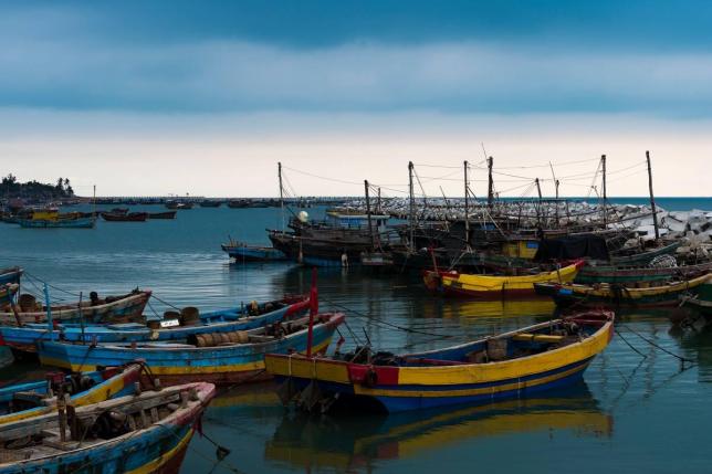 从盐场出来回到莺歌海镇子,海边便是当地的渔港码头,空气中充斥着十足的咸腥味道。