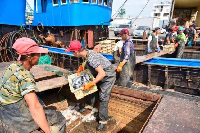 此时成筐的鱼虾已经从船上运下来,码头便开始属于那些被称为“渔娘”的女人:斗笠,橡胶手套,雨靴,还有经岁月洗礼过的黝黑的面庞。每个人都在忙着各自手头上的工作:将捕捞上来的鱼虾分类装筐,抬到码头边的店里,放入冰块,再将它们运往各地的市场……